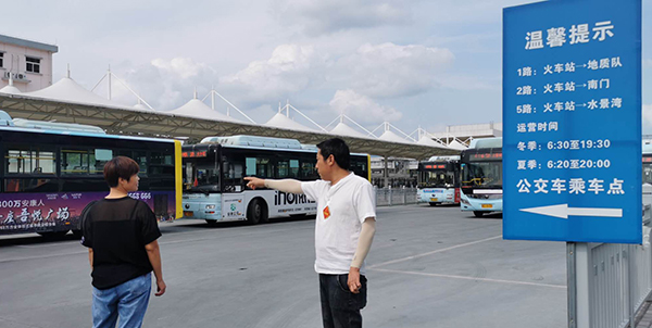 “你就在這等1路車,直達(dá)城東客運站,不用再走到進(jìn)站路哪兒等車了。”8月11日,在安康火車站公交首末站,市公交公司一車隊副隊長寇邦正告知乘客如何趕往目的地。